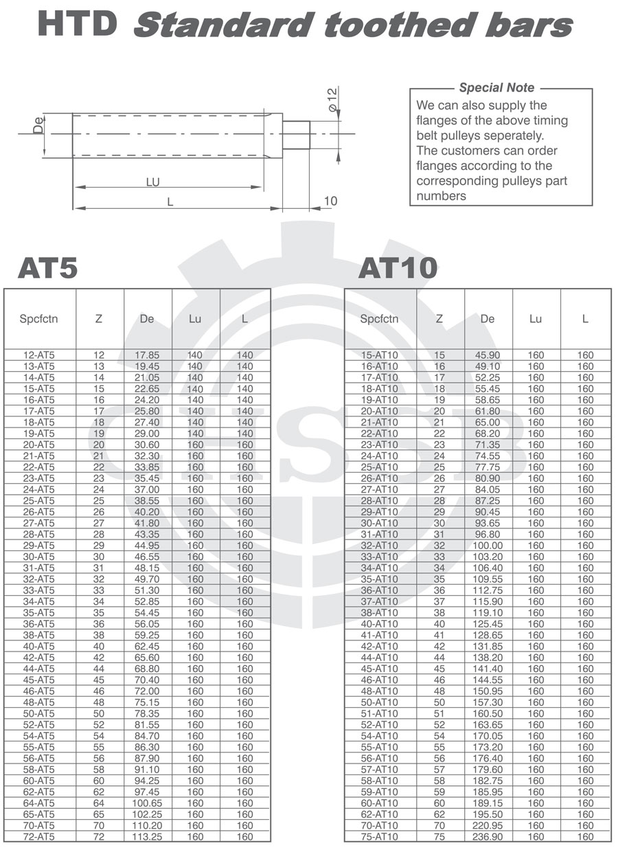 產(chǎn)品范圍: 美標(biāo)/歐標(biāo):(AT5/AT10) 英制尺寸產(chǎn)品(適用于美標(biāo)市場) 公制尺寸產(chǎn)品(適用于歐標(biāo)市場) HTD齒棒、圓弧齒、STD同步帶輪、圓弧齒齒棒
