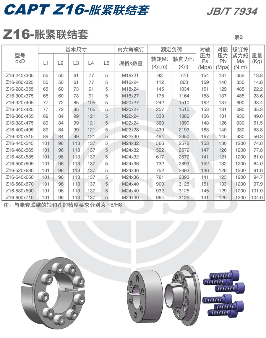 分布均勻,安裝拆卸容易。Z16型脹套是Z15型脹套的變形,內(nèi)環(huán)的法蘭盤外圓為臺階狀,有一大于脹套工作直徑的凸