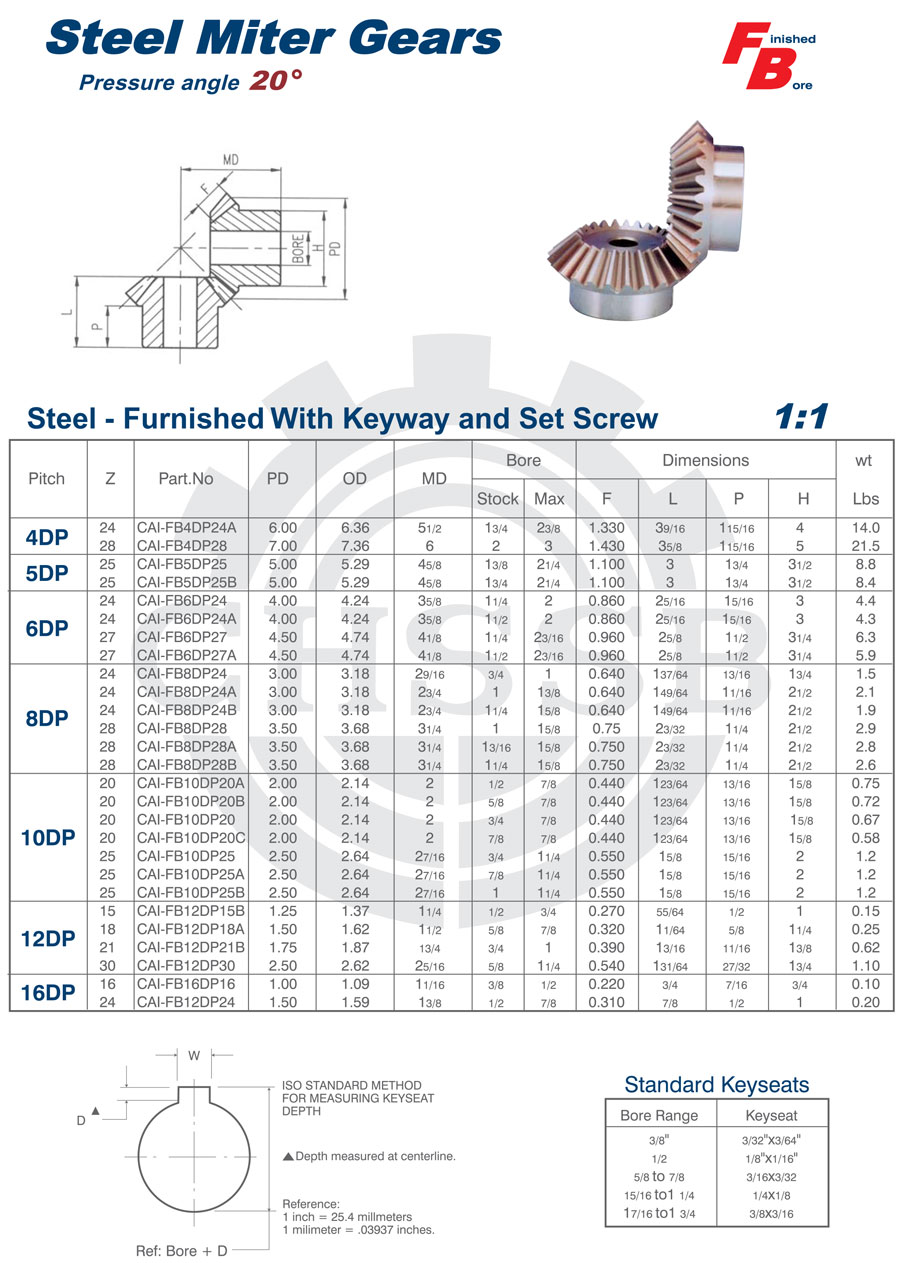 產品范圍: 美標:(20° 1:1/1:1.5/1:2/1:3/1:4) 英制尺寸產品(適用于美標市場) FB型錐齒輪 齒輪、圓柱正齒輪、尼龍齒輪、傳動齒輪、變位齒輪、漸開線齒輪、斜齒輪、螺旋齒輪、內齒輪、齒圈、傘齒輪、錐齒輪、